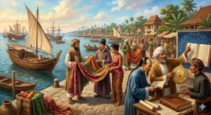 - Ilustrasi perdagangan Nusantara (Generate AI by Rendra)